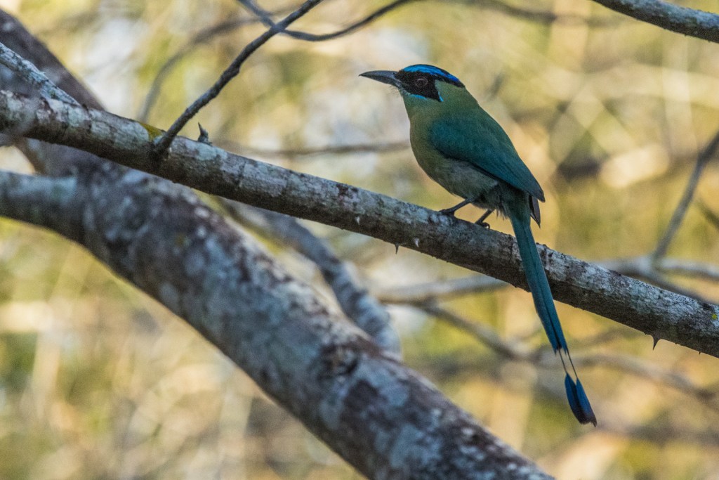 The trail produced a rich and varied list. Among the highlights: Great Kiskadee (Pitangus sulphuratus), Clay-colored Thrush (Turdus grayi), Ash-throated Flycatcher (Myiarchus cinerascens), Grayish Saltator (Saltator coerulescens), Black-and-white Warbler (Mniotilta varia), and a Lesson’s Motmot (Momotus lessonii) — a different species from the Turquoise-browed Motmot I had photographed earlier in the trip, quieter and more subdued in plumage, perched deep in the forest interior with its long blue-tipped tail hanging below the branch.